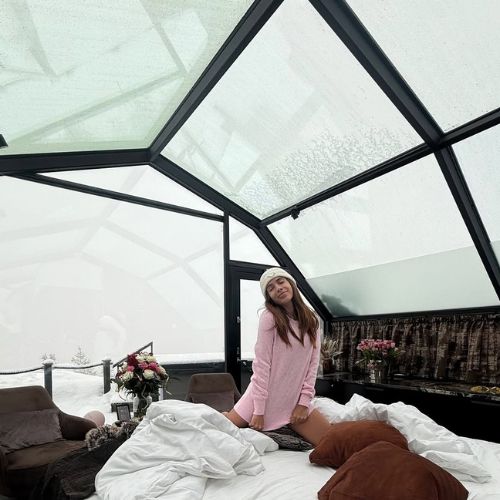 Nada de passar frio! A cantora escolheu uma cabana de vidro térmico que permite observar o céu estrelado e a icônica Aurora Boreal sem nem precisar sair debaixo das cobertas. O conforto tem preço, e não é baixo: na alta temporada, a diária de um “mimo” desses pode chegar a R$ 8 mil.
